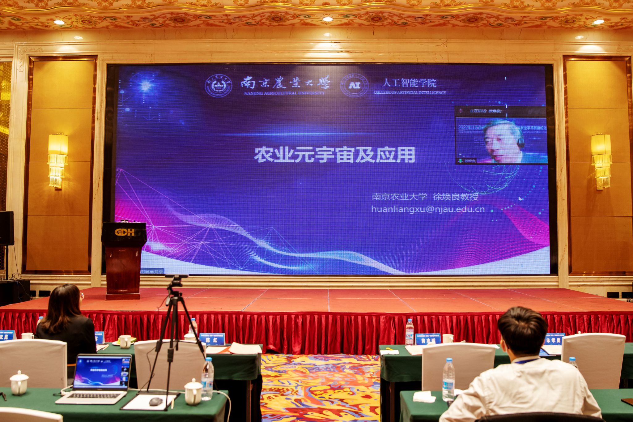 Zhao Chunjiang, director of the National Agricultural Informatization Engineering Technology Research Center, director of the National Agricultural Machinery Equipment Innovation Center, vice chairman of the Chinese Association of Artificial Intelligence, researcher of the CAE Member, vice chairman of the Jiangsu Provincial Engineering Class II Graduate Education Steering Committee, and vice president of Nanjing University of Aeronautics and Astronautics Professor Huang Zhiqiu, vice president of Jiangsu University Professor Chen Hong, vice president of Jiangsu University, and professor Xu Huanliang, president of the Institute of Artificial Intelligence of Nanjing Agricultural University, Professor Zou Lei, Professor Wang Xuan of the Computer Institute of Peking University, Director of the Knowledge Integration and Intelligent Decision Center of the National Engineering Laboratory for Big Data Analysis and Applied Technology (Peking University), and relevant leaders and teachers from the Graduate School of Jiangsu University, the School of Computer Science and Communication Engineering, and the School of Electrical Information Engineering attended the opening ceremony. More than 200 people, including well-known experts, scholars and graduate students from the national "Internet plus" and intelligent agriculture fields, attended the conference online and offline.