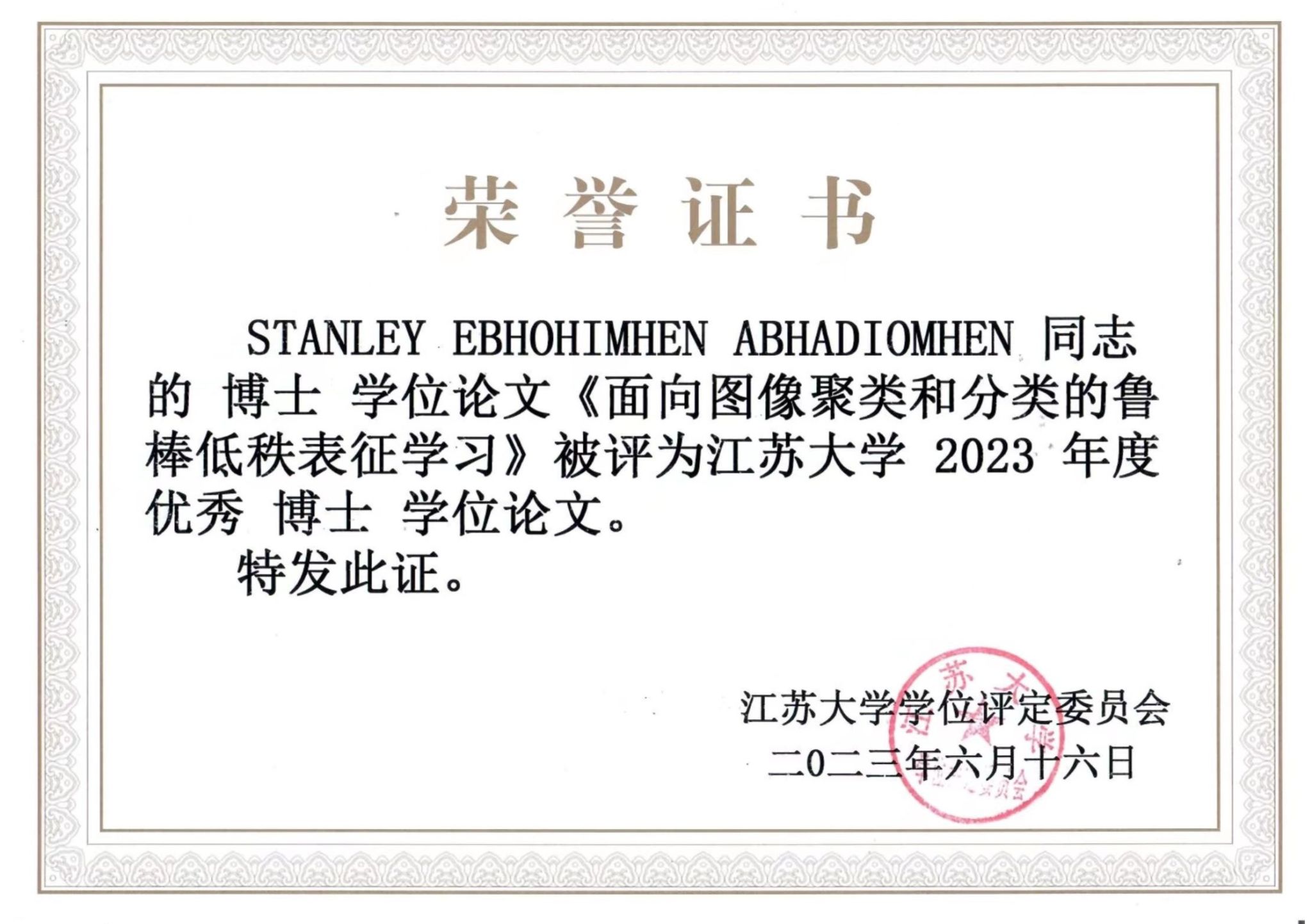 2023 JSU Excellent Doctoral Dissertation Award -Stanley Ebhohimhen Abhadiomhen