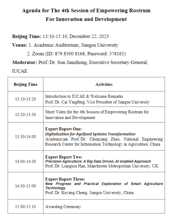 The 4th Session of Empowering Rostrum for Innovation and Development is held on Dec. 20th, below is the agenda,