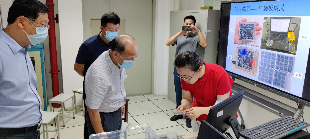 On the afternoon of August 10th, President Yan Xiaohong visited the School of Computer Science and Communication Engineering to inspect and guide the development of self-made experimental instruments and equipment and the later teaching operation of virtual simulation experimental platform, and listened to the work report of the project research and development team.