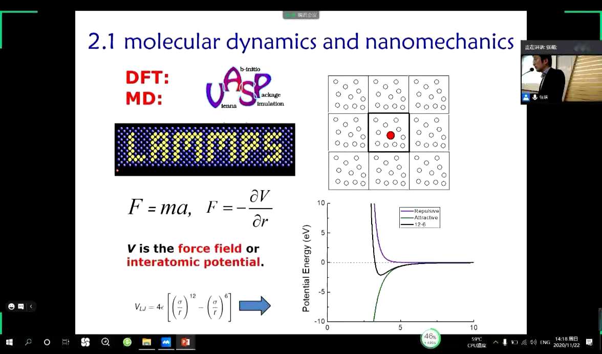 At the beginning of the forum, Tang Chun, a distinguished professor from Jiangsu University of Civil Engineering and Mechanics, gave an expert report with the theme of "physical mechanics of low dimensional materials from atomic computation".