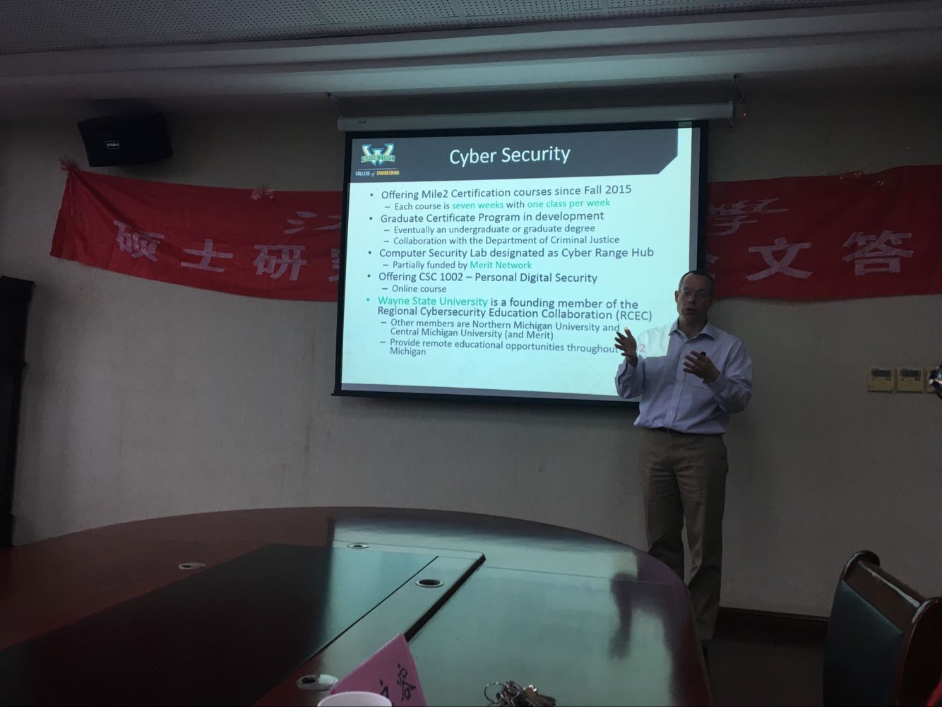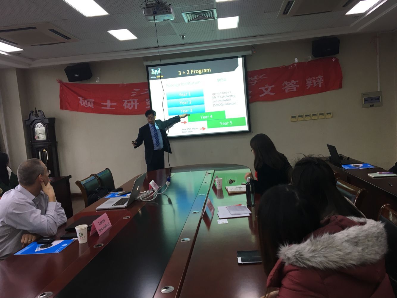 In December 15, 2017, the delegation of Wayne State University came to our college to discuss the issue of joint program and introduced the basic situation of Wayne State University to our students.