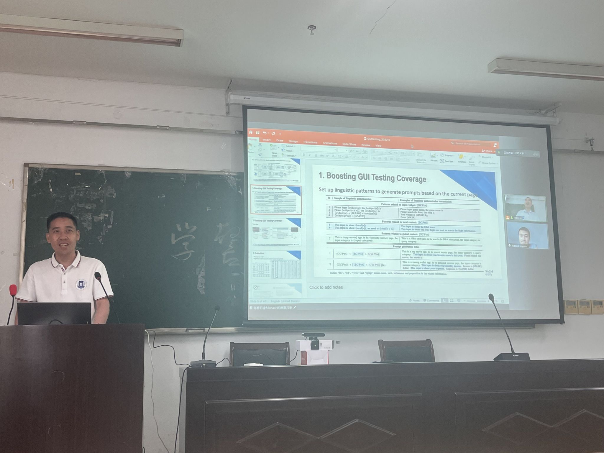 Prof. Chen Chunyang gave a research report titled "Visual Testing for Data Driven Mobile Applications" and shared the latest achievements. The report focuses on the development history of GUI testing tools and the current challenges they face, such as low coverage, high overhead, and lack of App availability and accessibility. Teacher Chen Chunyang introduced his research work on improving GUI testing coverage and efficiency, as well as utilizing data-driven methods and computer vision algorithms to achieve automated visual fault reproduction. He also shared research progress on enhancing the usability and accessibility of application GUI through visual information enhancement. In addition, Teacher Chen Chunyang introduced a set of corresponding tools developed by his team for automated GUI testing.