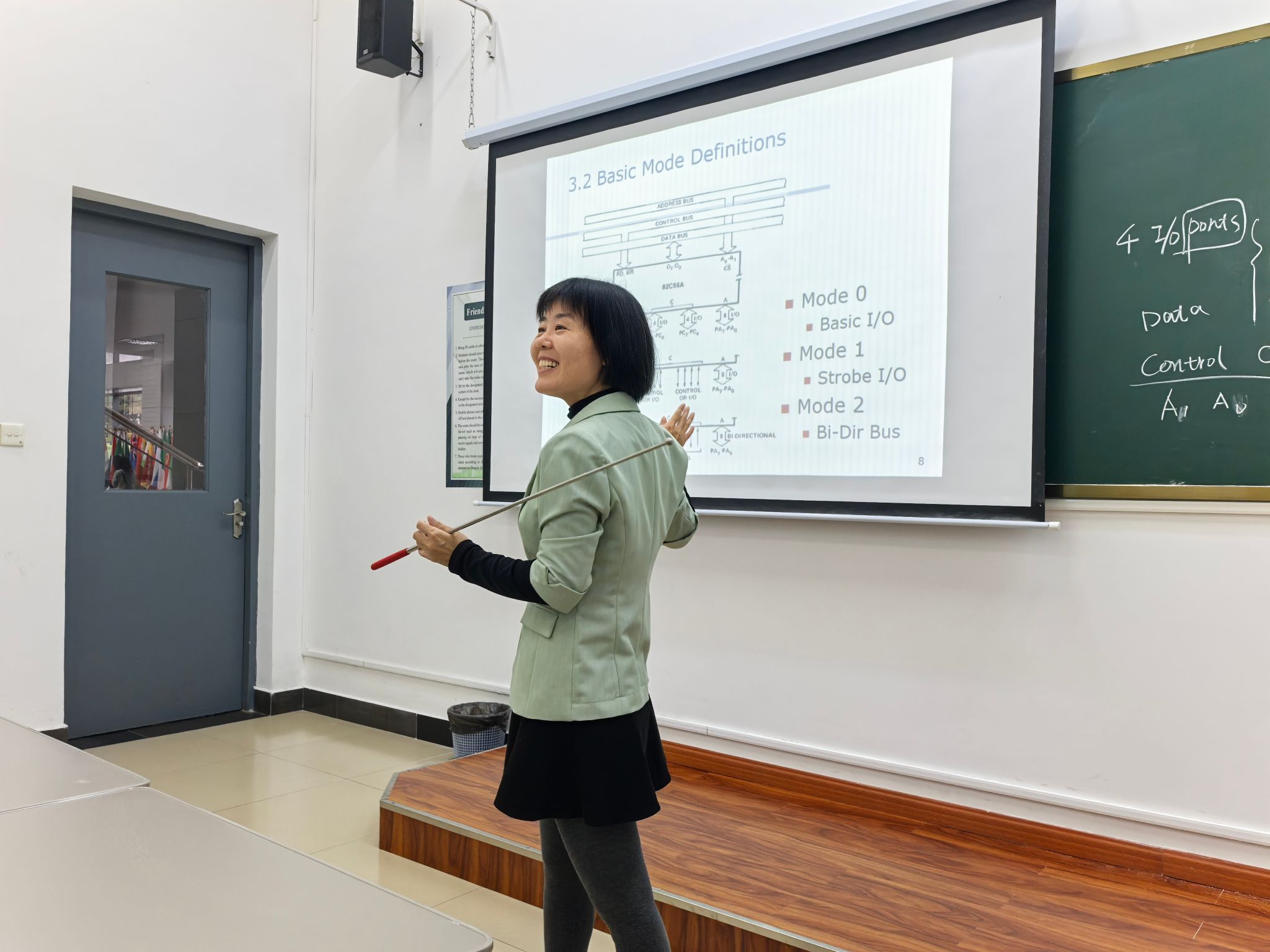 During the class, Professor Zeng first led the students in reviewing the previous lesson, guiding them to consolidate their learned knowledge and grasp the key points in a timely manner. She then further expanded the teaching, focusing on the programmable parallel interface 8255, and explained its internal structure, modes of operation, and programming applications to the students one by one. Throughout the class, she adopted an inquiry-based teaching method, fostering an easy and lively atmosphere of interaction and encouraging students to continuously think, thereby broadening their horizons while reviewing old knowledge and learning new concepts. During the lecture, Professor Zeng was adept at closely integrating theory with practice, combining dull and difficult concepts with experimental examples to make the teaching content come alive. The students and teachers in the audience were all engrossed in the lecture.