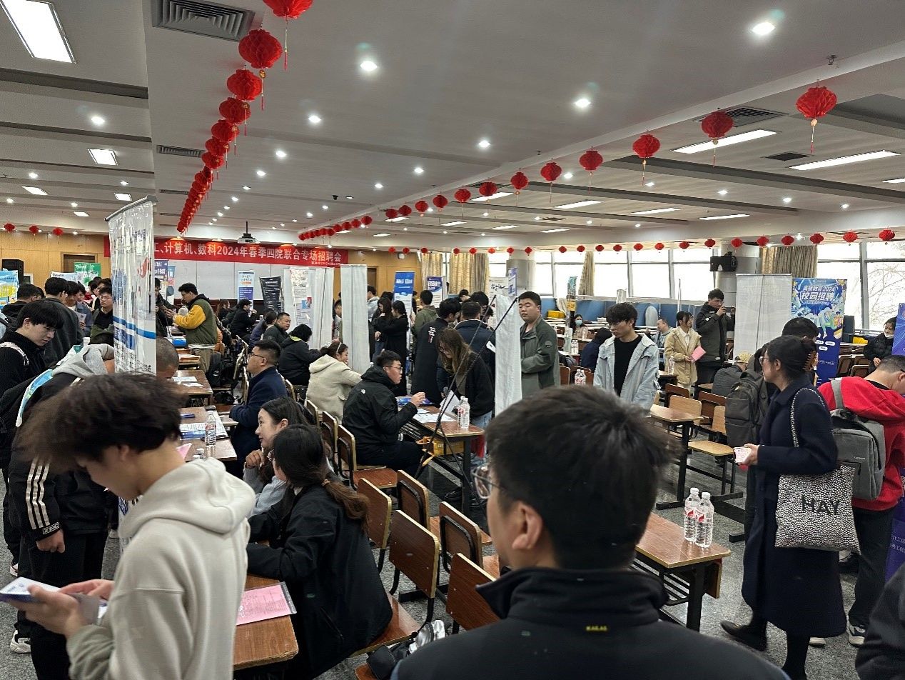 On the afternoon of March 20th, with the guidance and support of the Student Affairs Office and the Student Career Guidance and Service Center, the School of Computer Science, in collaboration with the Schools of Mechanical Engineering, Agricultural Engineering, and Mathematical Sciences, successfully held a joint job fair at the Jingjiang Auditorium of Jiangsu University. Sun Guo, the Secretary of the Party Committee of the School of Computer Science, Yang Bo, the Deputy Secretary of the Party Committee and Vice Dean, as well as counselors for the graduating classes were present at the job fair to provide guidance for the graduates. Nearly 300 graduating students from the School of Computer Science participated in this job fair.