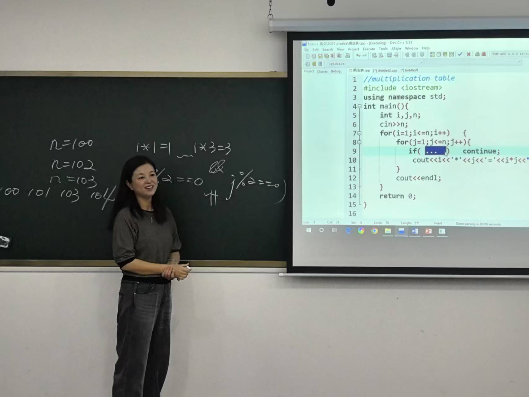 The class focused on loop control statements—break and continue. Professor Zheng began by reviewing previous content, then introduced the break statement, followed by a systematic explanation of both statements using flowcharts, algorithmic descriptions, and live coding examples. Through relatable program demonstrations, she guided students to understand how these statements alter loop execution. The session concluded with hands-on coding exercises, allowing students to immediately apply what they had learned.