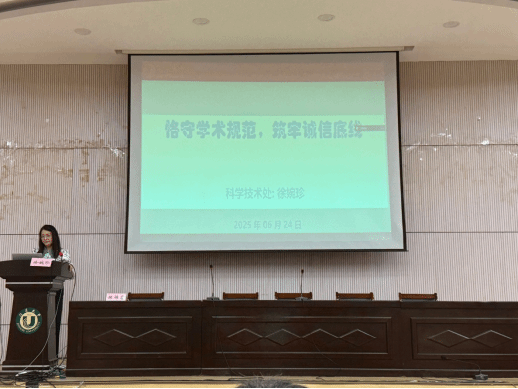 宣讲会上,徐婉珍凭借深厚的政策理论功底和丰富的科研管理经验,结合生动案例与详实数据,深入剖析了学术规范的核心内涵与科研诚信的极端重要性。她指出,学术规范是科学研究的基石,科研诚信则是学术生命的根本保障。她系统梳理了学术研究全流程中必须遵守的基本准则,包括选题论证、数据获取与处理、成果署名、论文发表及文献引用等环节的规范要求,并着重警示了剽窃、造假、篡改、不当署名等典型学术不端行为的严重危害及后果。